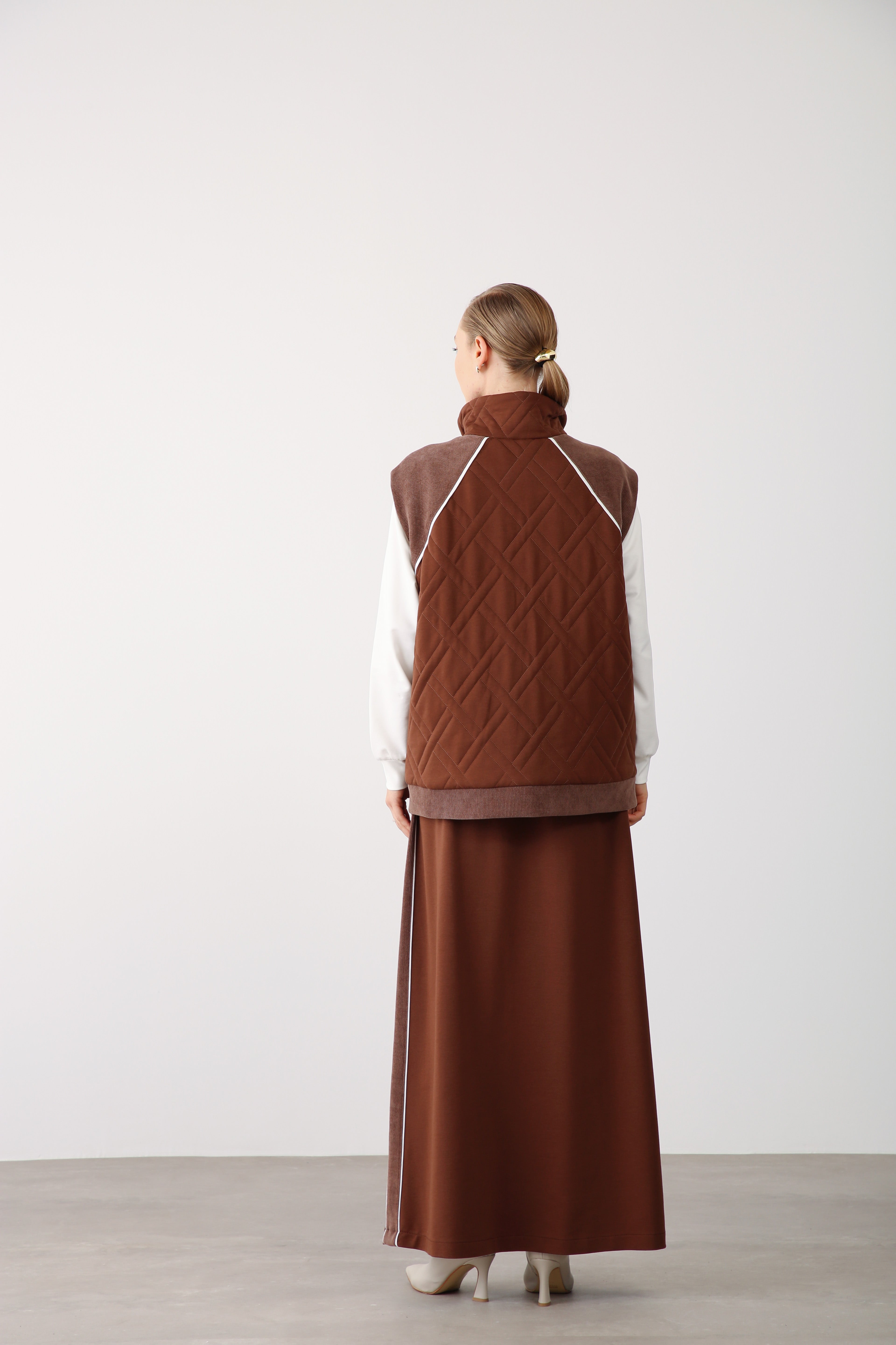 This skirt highlights a modern elegance with its warm brown tone and streamlined side stripe design. The elastic waistband provides all-day comfort and adaptability, making it suitable for both relaxed and elevated ensembles.