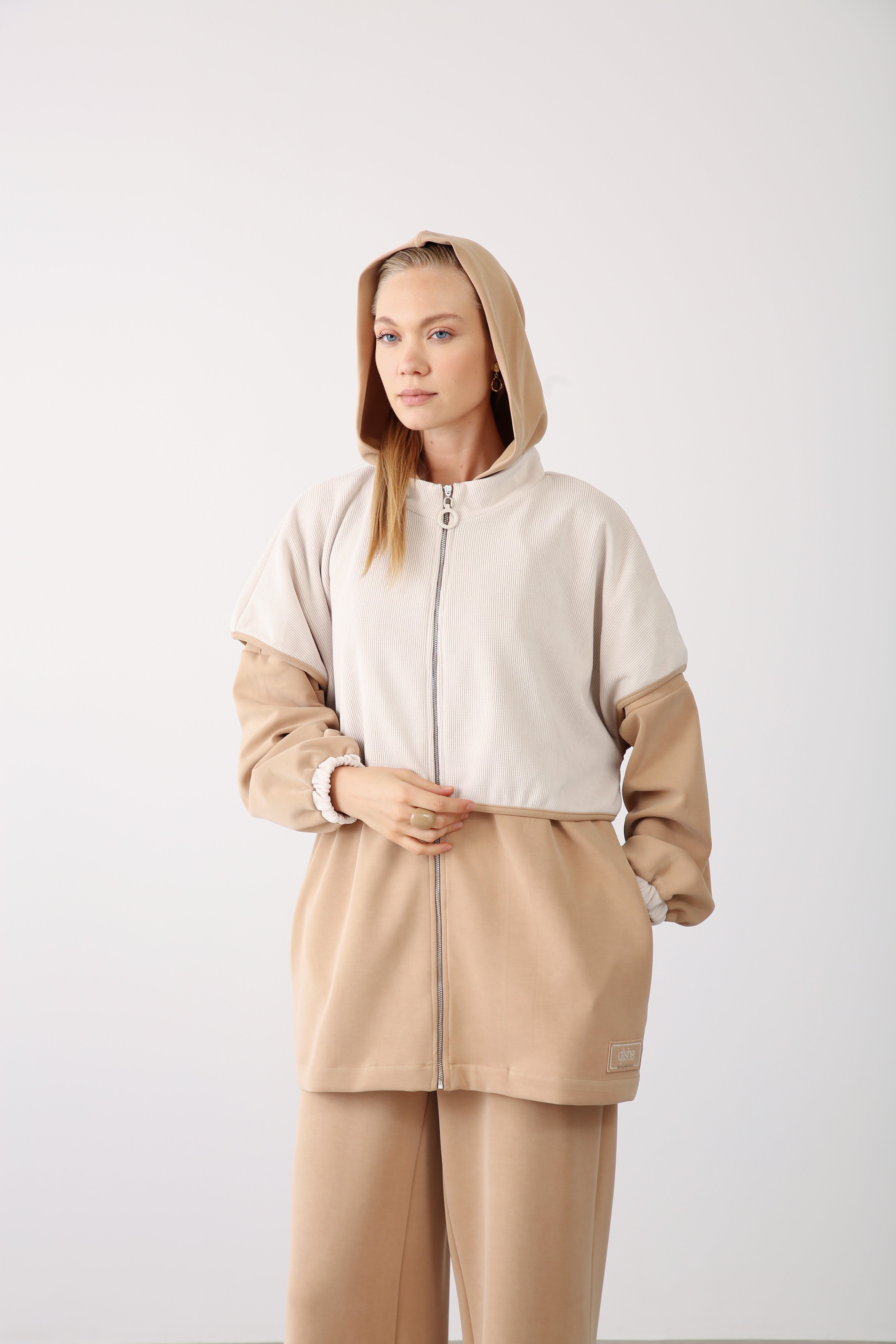 With a contrast hood and distinctive zipper, this jacket delivers effortless elegance infused with comfort. The warm camel tone highlights its contemporary design while staying true to timeless versatility.
